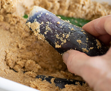 ・茄子の糠漬け(漬物でも合います)、美味しい!合う!アフターのタル感と旨味が心地よい!