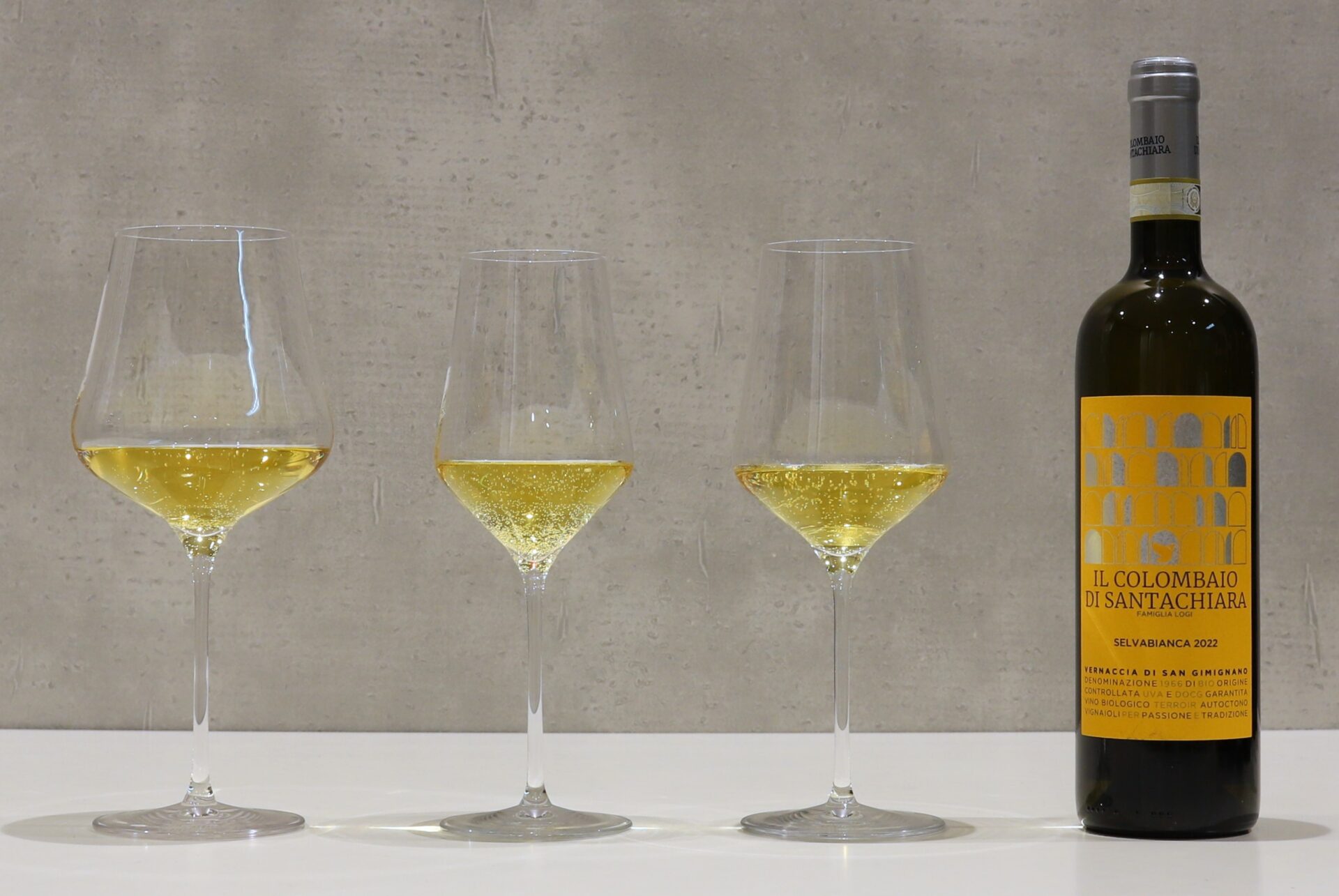 木イチゴやラズベリーなど赤系ベリーの香りをストレートに感じる。サンジョヴェーゼらしい酸や、濃厚な果実味など品種の個性を存分に感じる為に最も適したグラス。