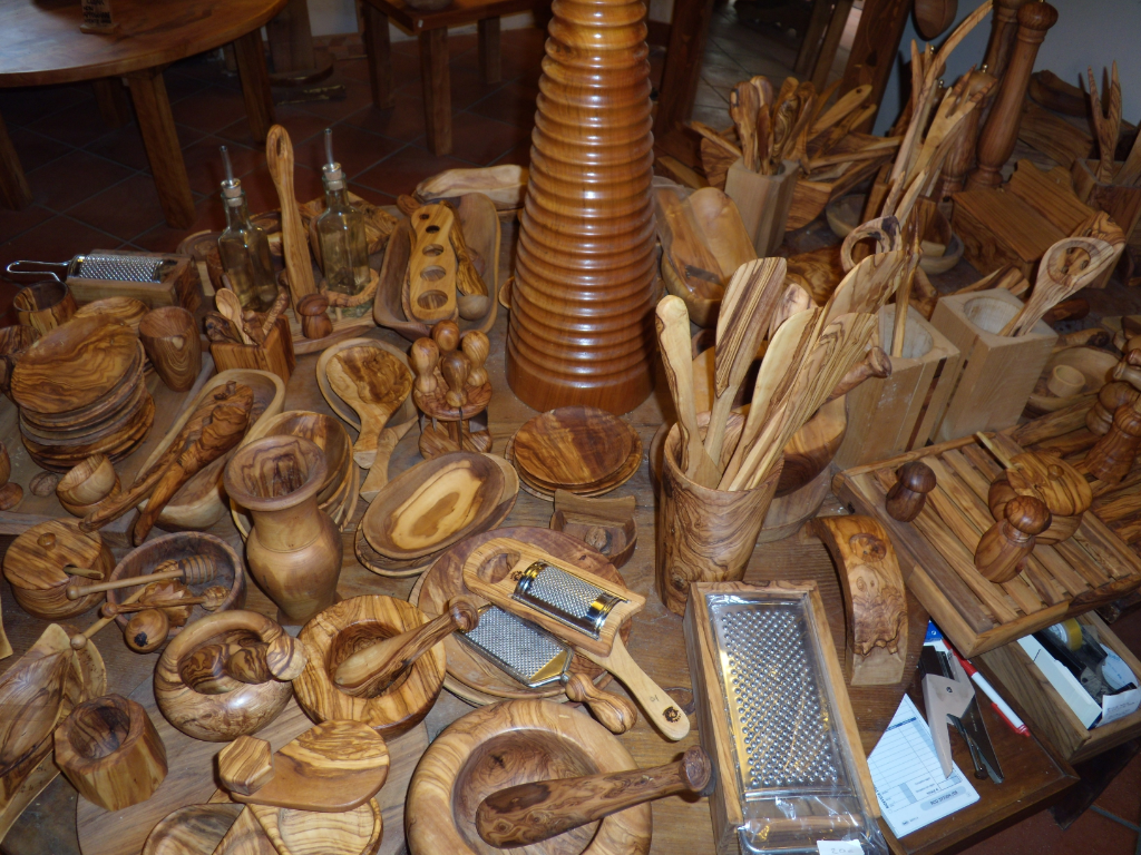 オリーブの木で作られた調理器具。オルビエートでは木製の工芸品はよく見られます。