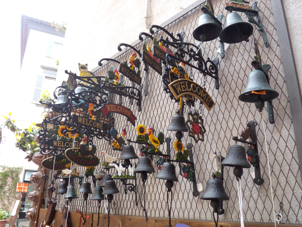 オルヴィエートにはかわいいお土産屋さんが集まり、「ようこそ」「いらっしゃいませ」と書いてあるベルも販売しています。