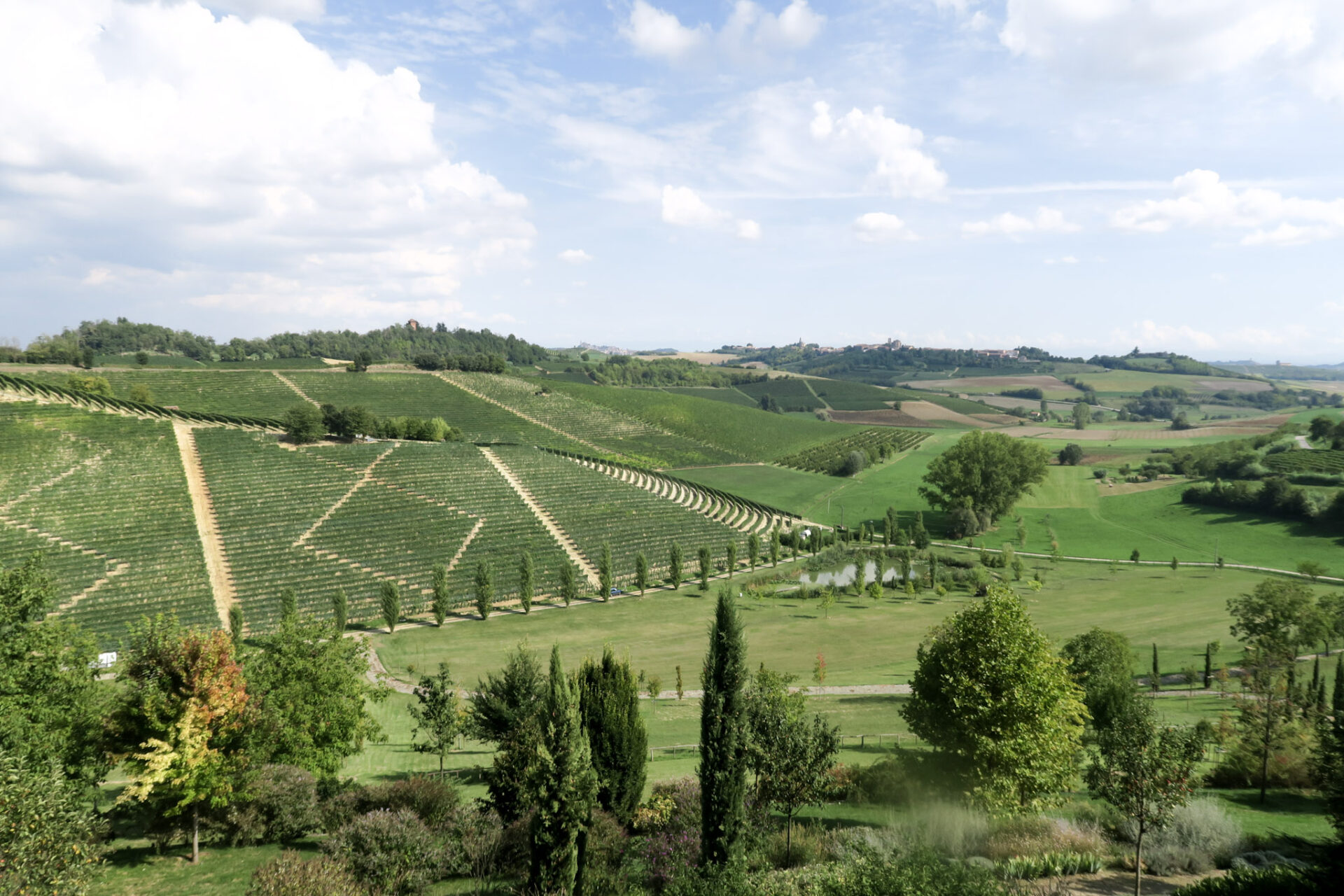 ピエモンテ州南部モンフェッラートの美しいブドウ畑が広がります。
