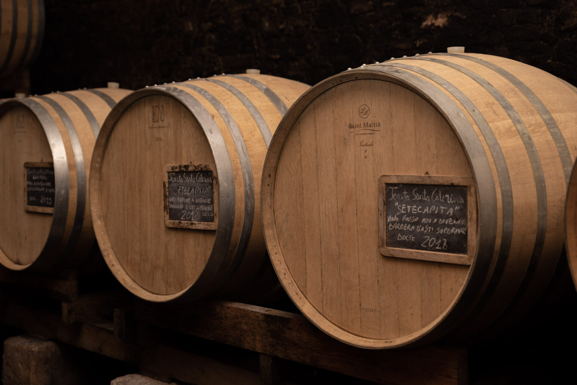 大樽で熟成中のバルベーラ