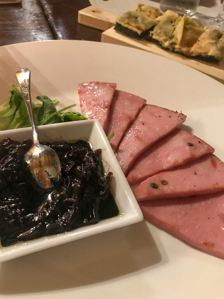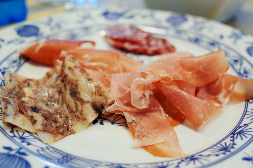 地元の名産品の生ハム・サラミ
