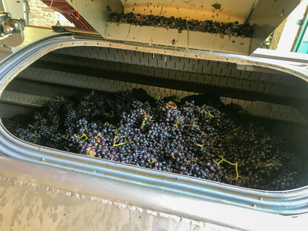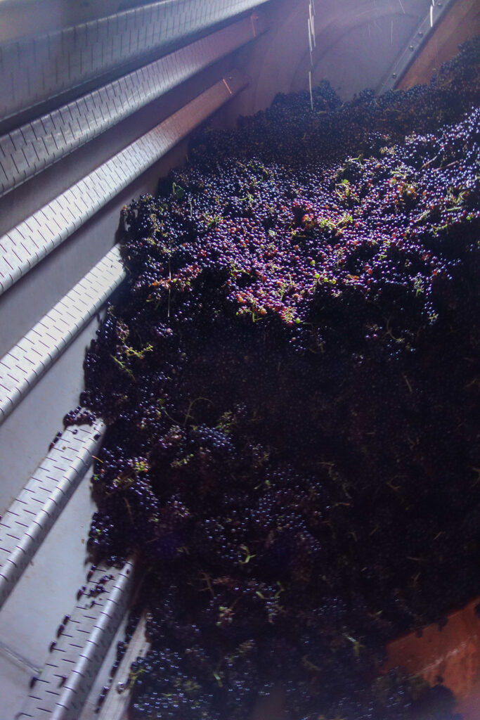 取材の途中で遭遇した。 これから圧搾期にかけられる収穫されたばかりのピノ・ネロ種。