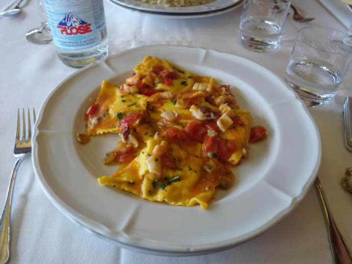 内陸部ではリコッタチーズやハーブ、かぼちゃなどを使うことが多いトルテッリですが、海に面したリミニでは魚介のすり身を中に詰め、更に魚介のソースをかけて食べます。