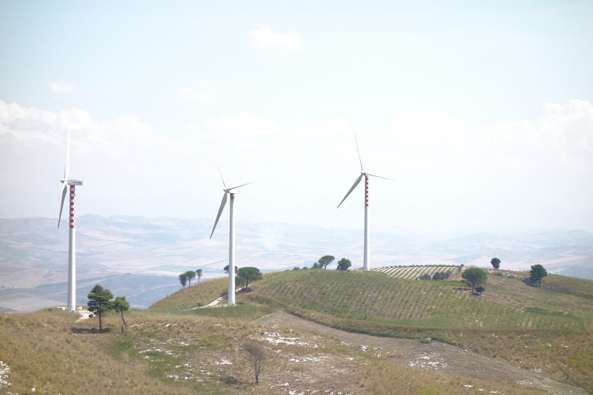 プロペラ風車 シチリアやサルデーニャをはじめとする南イタリアでは風力発電が盛んです。