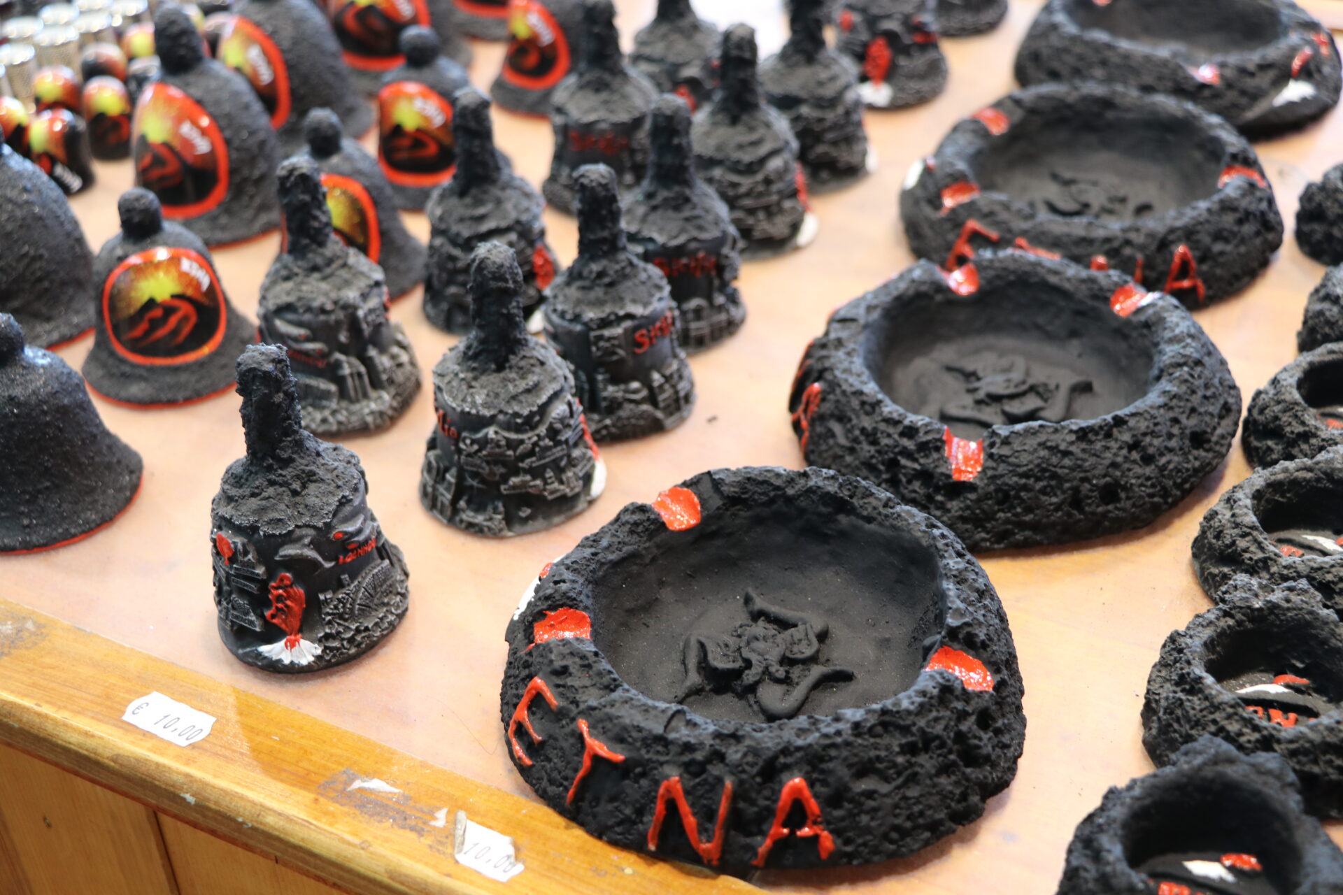エトナ山の溶岩でできた土産物が売られています。