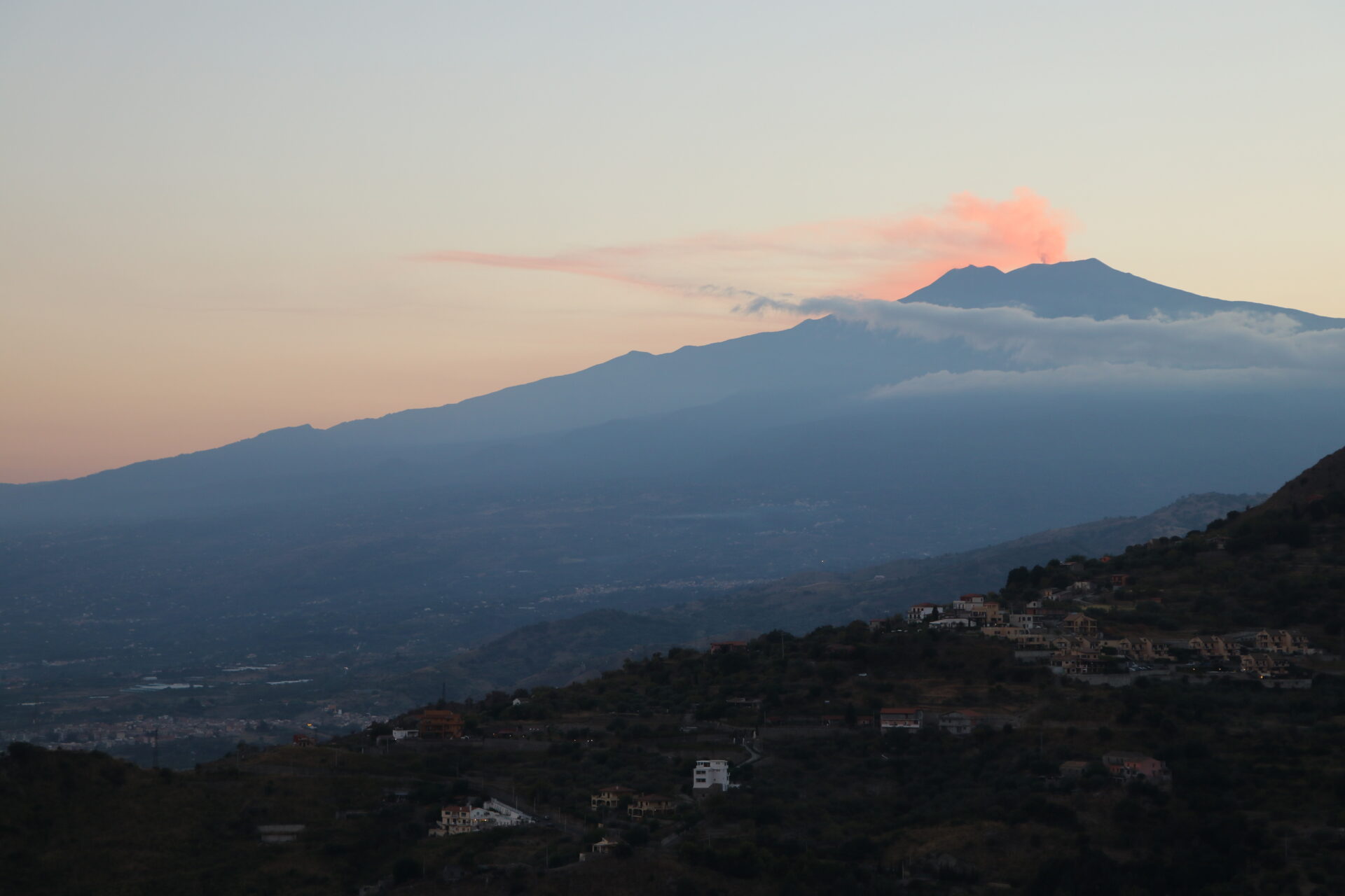 タオルミーナから南西に位置するエトナ山の眺め イタリアの活火山の中では一番高い