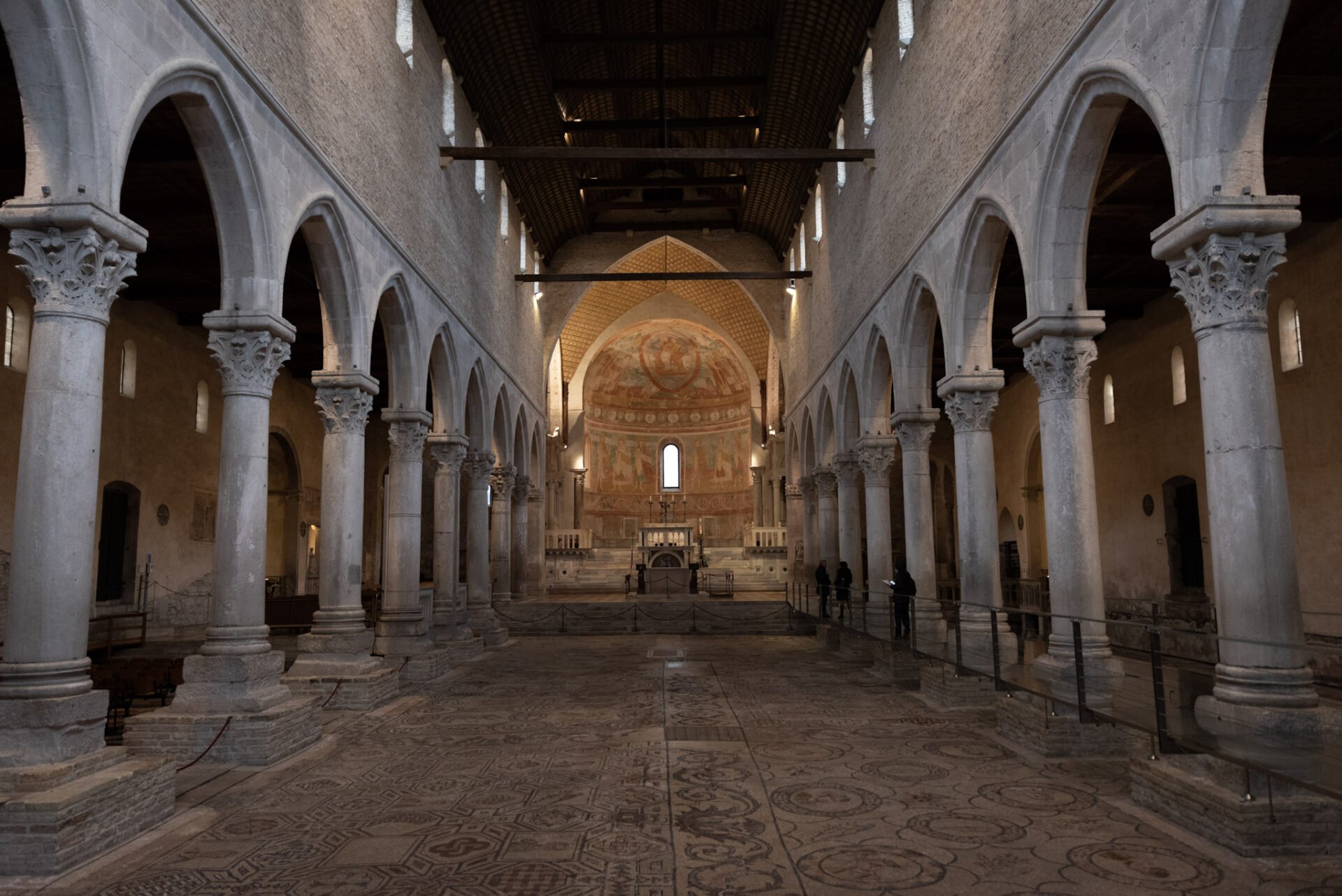 アクイレイア大聖堂内部。中世のモザイクやフレスコ画を見ることが出来ます。