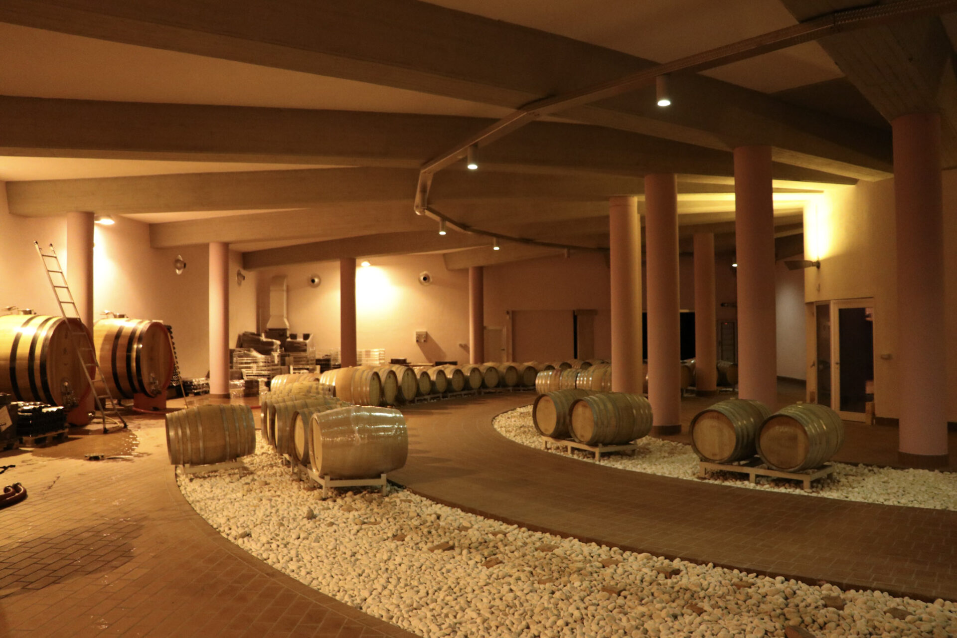 お洒落に整備された大樽の貯蔵庫